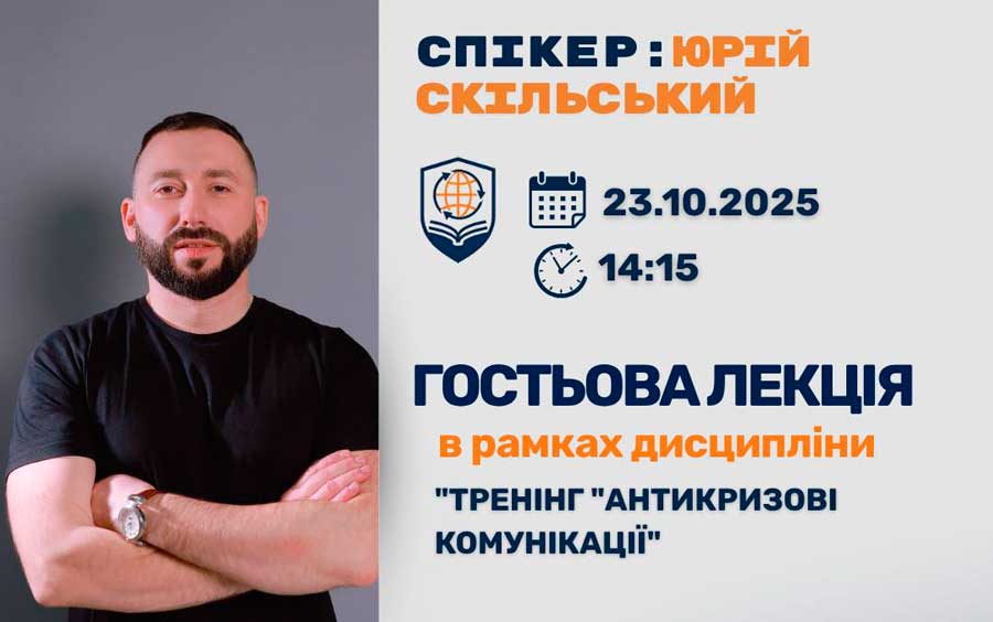 23 жовтня 2025 року в рамках дисципліни «Тренінг «Антикризові комунікації»» відбудеться гостьова лекція на надзвичайно актуальну тему — «Антикризові комунікації як емоційний щит бізнесу: як стримати шторм у цифровому океані».
